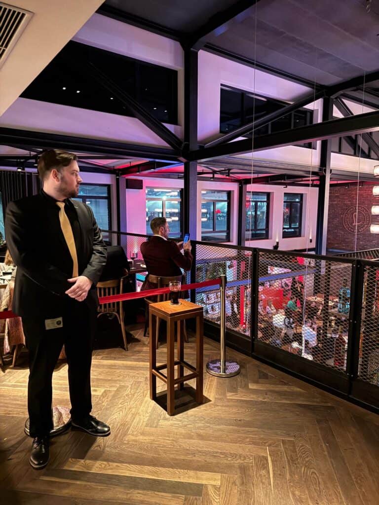 • Crowd Management im laufenden Betrieb: Restaurantbetrieb, Service, Fans, Team – alles läuft parallel. Unsere Aufgabe ist es, Ströme zu lenken, Engpässe zu entzerren und im Zweifel frühzeitig einzugreifen, bevor Situationen kippen oder unangenehm werden.
